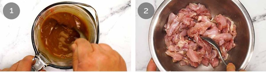 - Chicken – Toss chicken with Chinese cooking wine and pepper.
