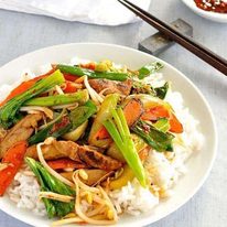 - 100 g/4oz chicken (or beef or pork) sliced against the grain