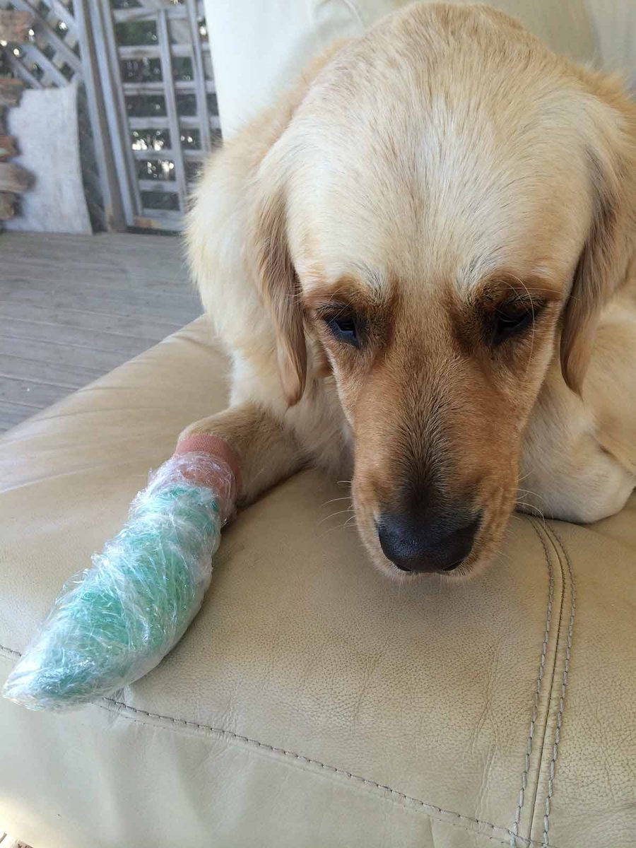 But with high energy comes injuries. In Dozer’s case, regularly cutting his paw pads on oyster shells littered on the shore that he’d sprint across madly, truly believing that he had a real chance of catching that seagull.