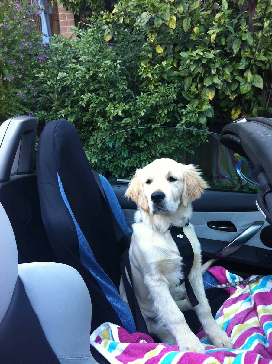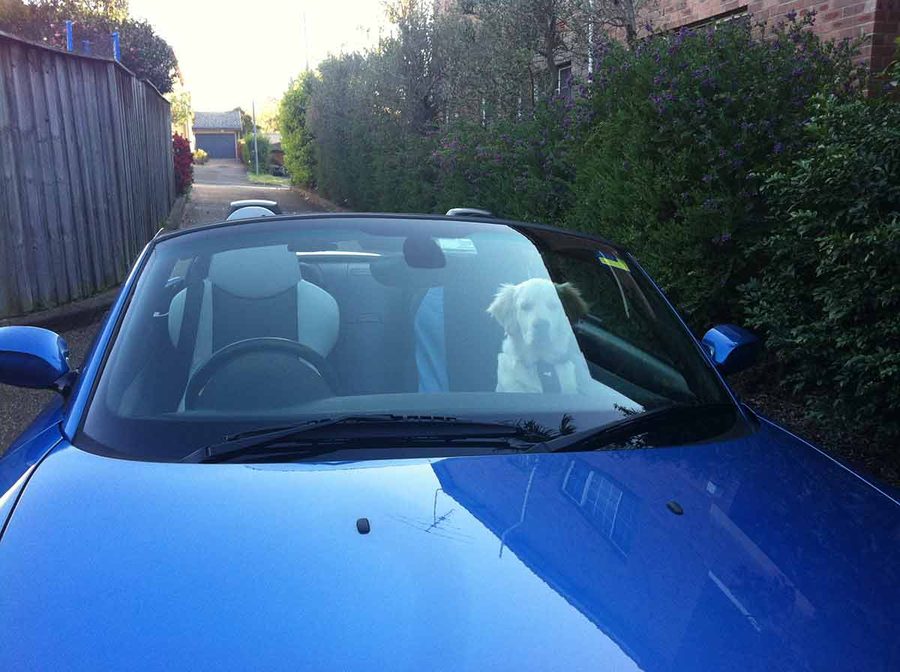 Well, that never eventuated. He grew so big before he turned 1, he couldn’t fit in the car seat. Also, he also hated the wind in his eyes. So when I put the top down he’d curl up tightly in the seat, head buried in his paws, looking completely miserable.