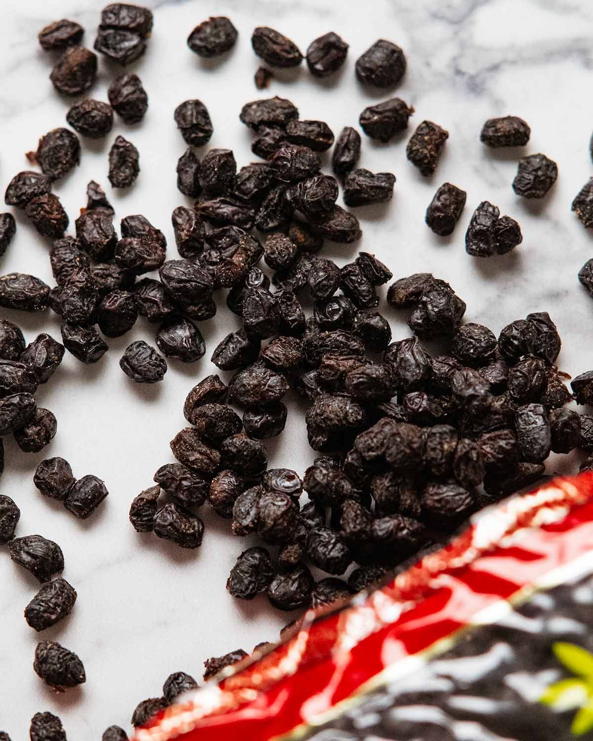 This is what preserved black beans looks like – shrivelled up raisins: