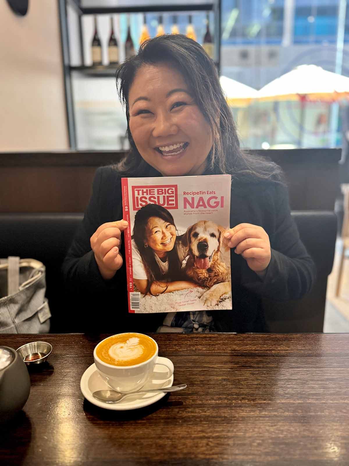 And also, look how prominent Dozer is on the cover! Plus, I love that the journalist came to interview me at RecipeTin Meals (my food bank) and interviewed JB and Stephen too. 🙂