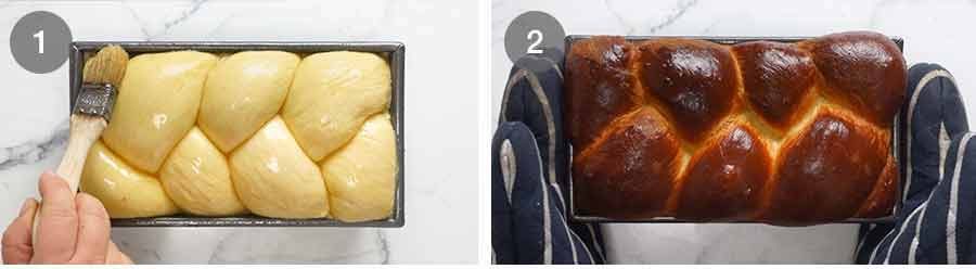 - Egg wash: Brush the brioche surface very gently with whisked egg.