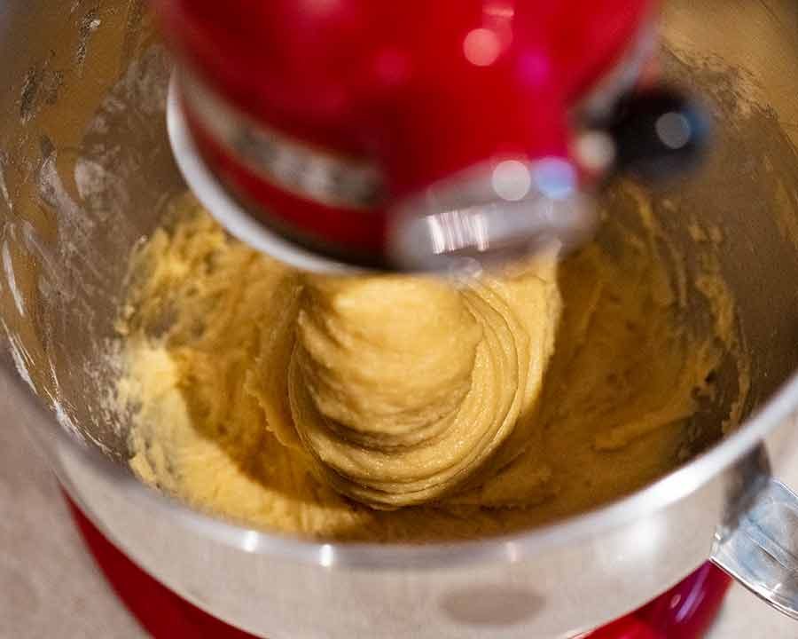 - Incorporate butter: Keep mixing until the butter is fully incorporated- about 1 minute. Dough will be pasty and sticky!