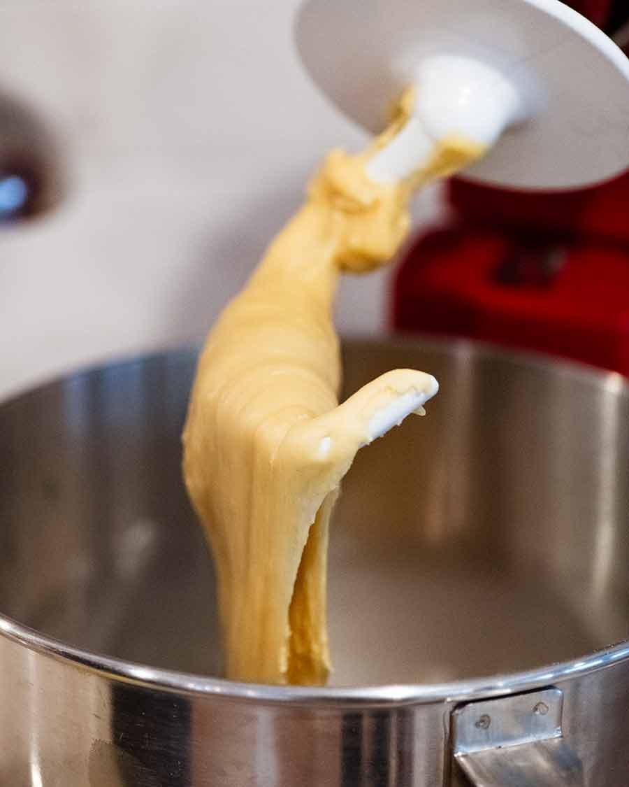 Heads up: Yes really, the dough takes 35 minutes to mix using a stand mixer. It will look like a sticky, unusable paste for the first 25 minutes, and even once ready it will still be a very, very soft dough. Click here to jump to the section explaining why the dough is soft.