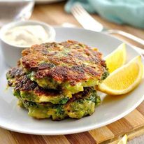 - Cook – Heat 1 tbsp of oil in a fry pan over medium heat. Scoop 1/4 cup of Batter and drop into the pan and use a spoon to gently flatten to about 1cm/1/3" thickness (I do 3 fritters at a time). Cook each side for 2 to 3 minutes until golden brown. Repeat with remaining Batter.