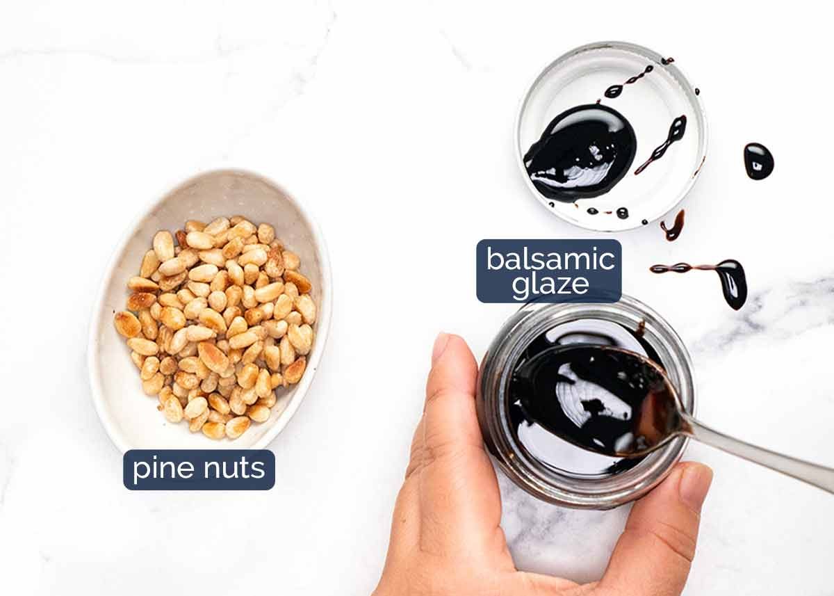 - Serve – Pour into a big bowl and serve! If using extra finishes, drizzle with a swish of balsamic glaze (not too much, it's strong!) and sprinkle with pine nuts. Eat!