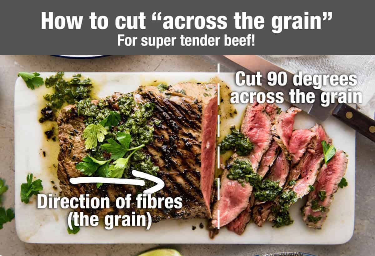 - Take the skirt steak out of the fridge 20 – 30 minutes before cooking to bring to room temperature.