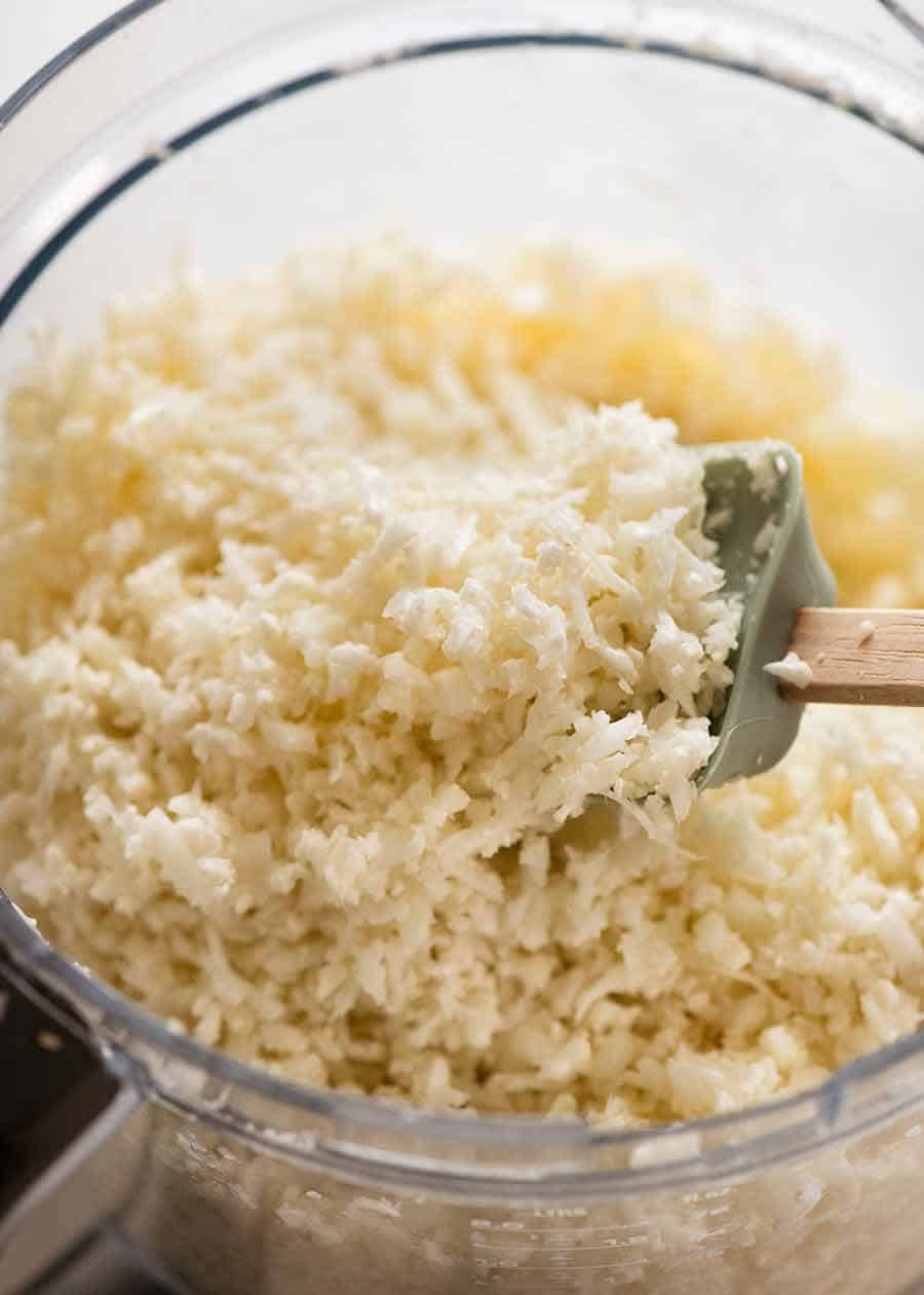 - Hand grating – cut whole cauliflower into quarters, then grate by hand.