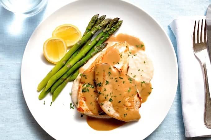 While the chicken is brining, make the sauce. I like to make the sauce extra flavourful with a splash of white wine (evaporated to remove alcohol and just leave flavour – no trace of winey taste at all) and chicken stock/broth.