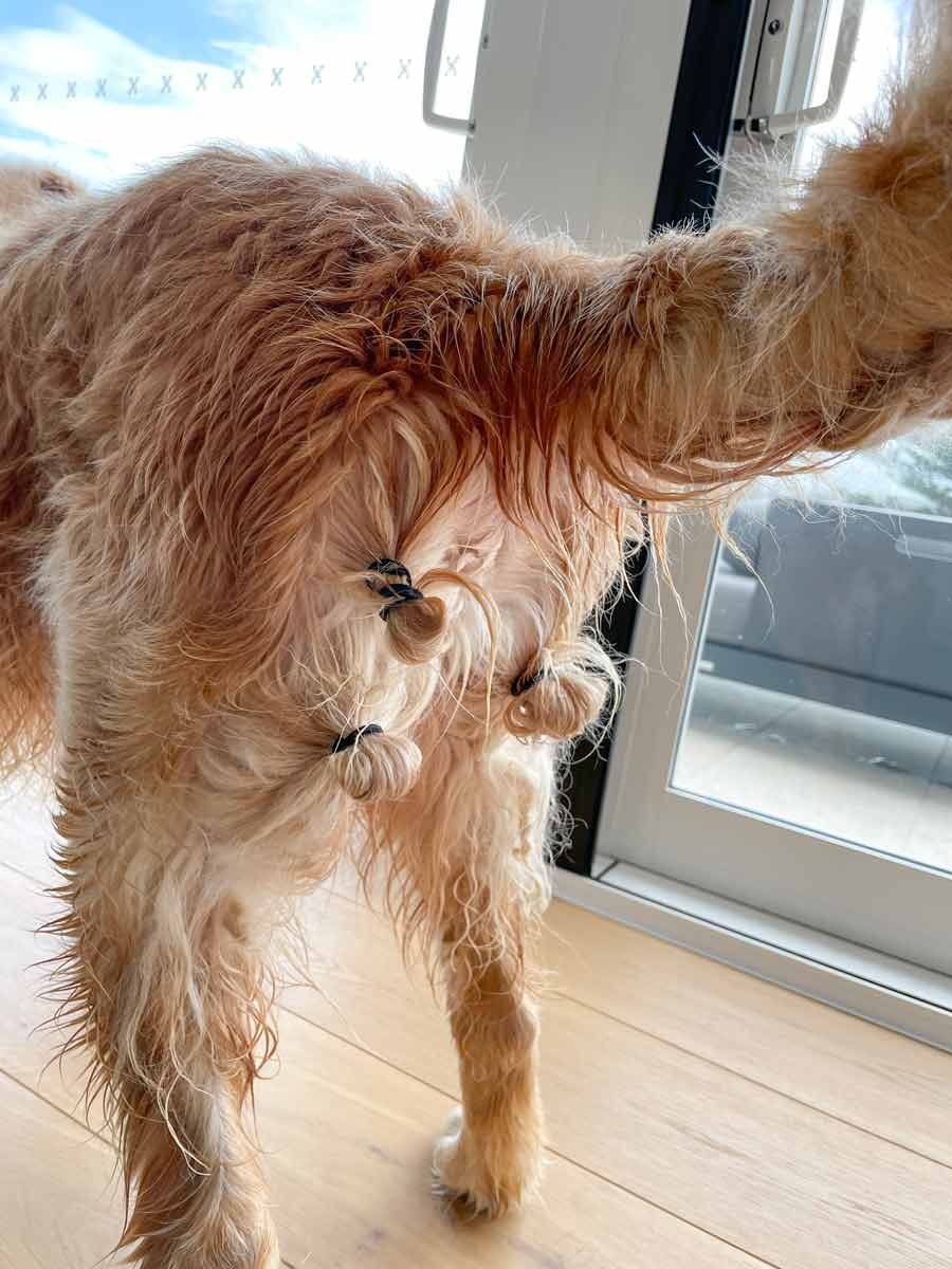 When Dozer has an upset stomach, it’s time for his “man buns”. They help keep parts of him – ahem – clean, shall we say. Practical – and hilarious. (PS He’s fine now! Don’t feel too sorry for him, it was no doubt self-inflicted, eating something he shouldn’t have.)