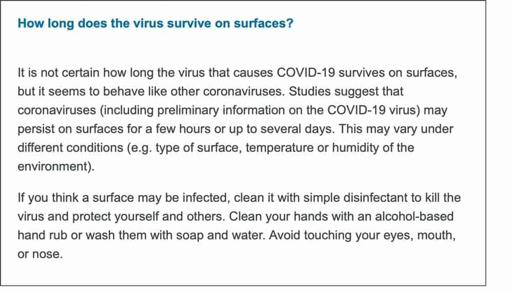 Coronavirus believed to survive up to 3 days on surfaces