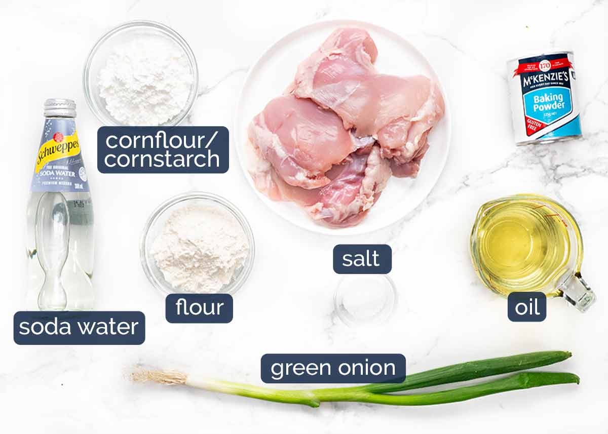 Chicken – I prefer boneless thighs because the meat is juicier and you also get more gnarly craggy edges which means more crunch! It’s also what I typically see at Chinese restaurants – Asians typically favour dark meat over leaner breast.
