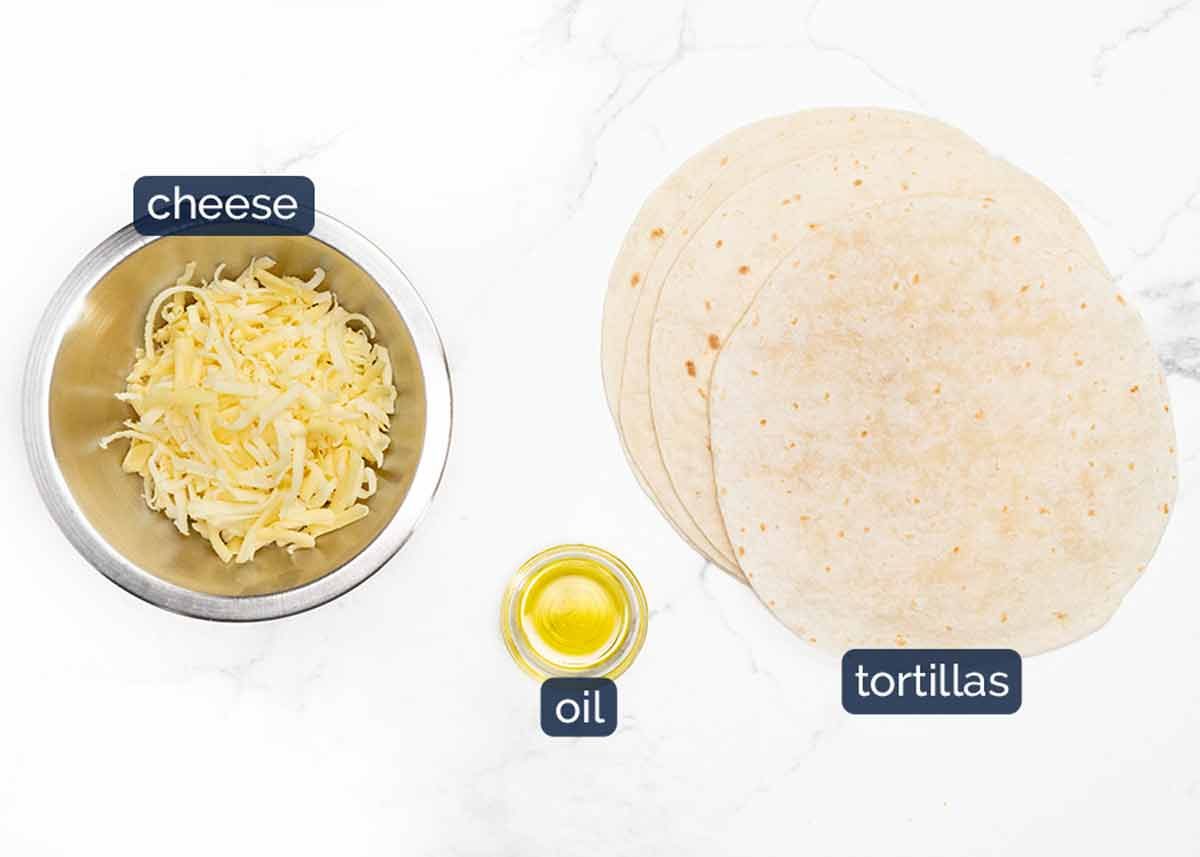 Ingredients for crispy oven baked quesadillas