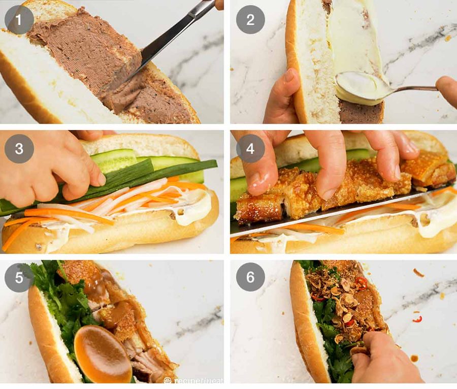 Putting the banh mi together is just about the order in which it is assembled. And stuffing generously. Nobody wants a stingy banh mi!!