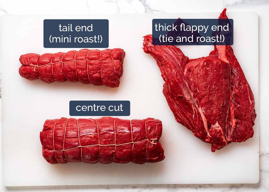 Though the most desirable and sought-after part of the beef tenderloin is the centre-cut, there is by no means any reason why you can’t use the tail and fat end for roasting too simply by tying them up and making smaller roasts.