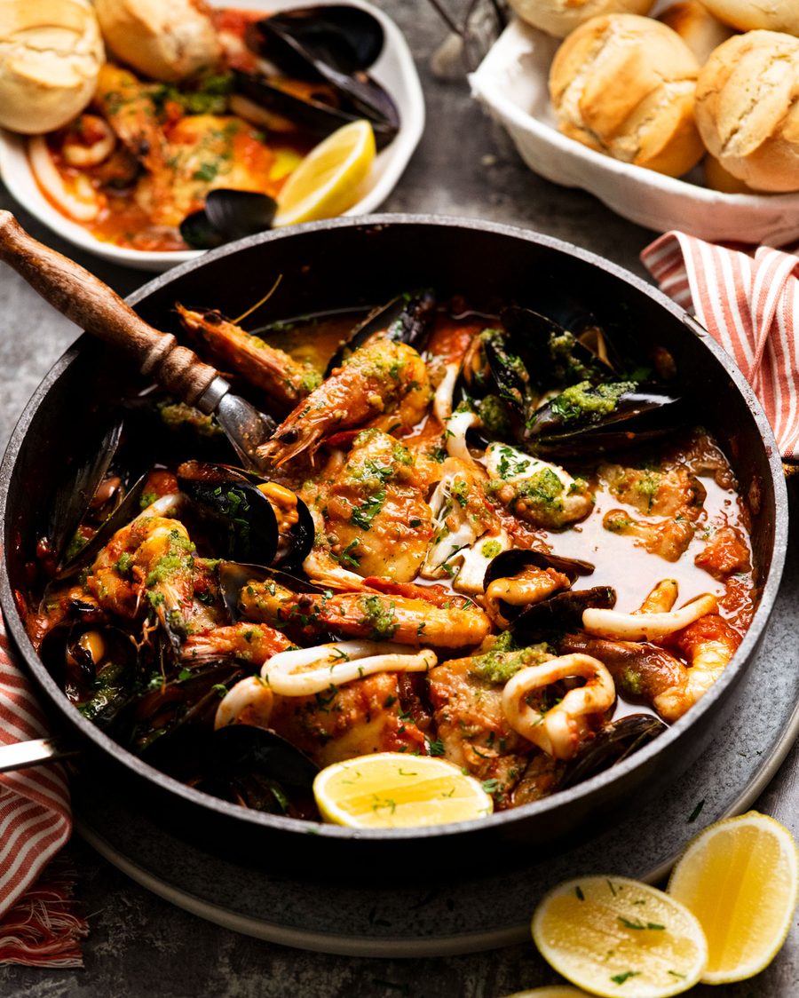Spanish seafood stew – An iconic cookbook exclusive dish, made with a medley of seafood in a flavour loaded tomato sauce, many people have tried this now and everyone has been blown away by the flavour! I really hope you try it one day. ❤️