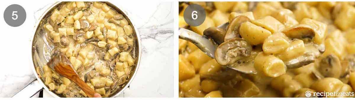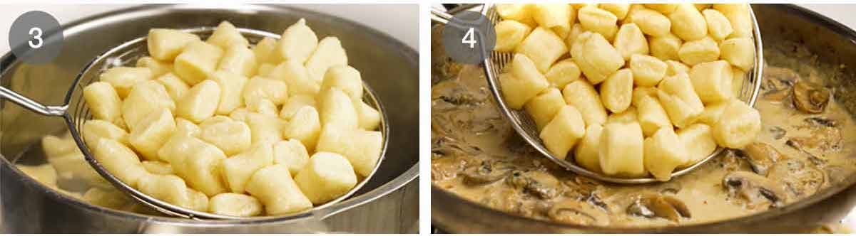 Tip: Boil the gnocchi in a pot next to the mushroom sauce so you can scoop it out of the water and straight into the sauce.