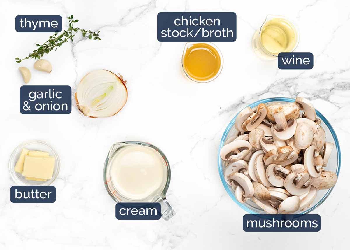 Here’s what you need for this lovely creamy mushroom sauce infused with subtle thyme flavour.