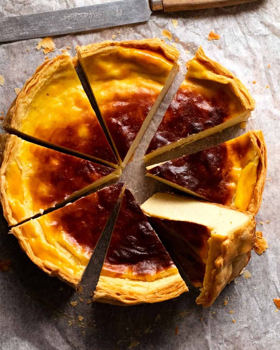 - Serve: Remove from fridge 1 hour prior to serving to bring to room temperature. Cut into slices like cake! The pastry is crispy & flaky. The custard will cut neatly (it will not ooze) but when you bite into it, the custard is beautifully soft and creamy. Traditionally eaten as a hand held bakery treat in France but you can use a plate if you're feeling civilised!
