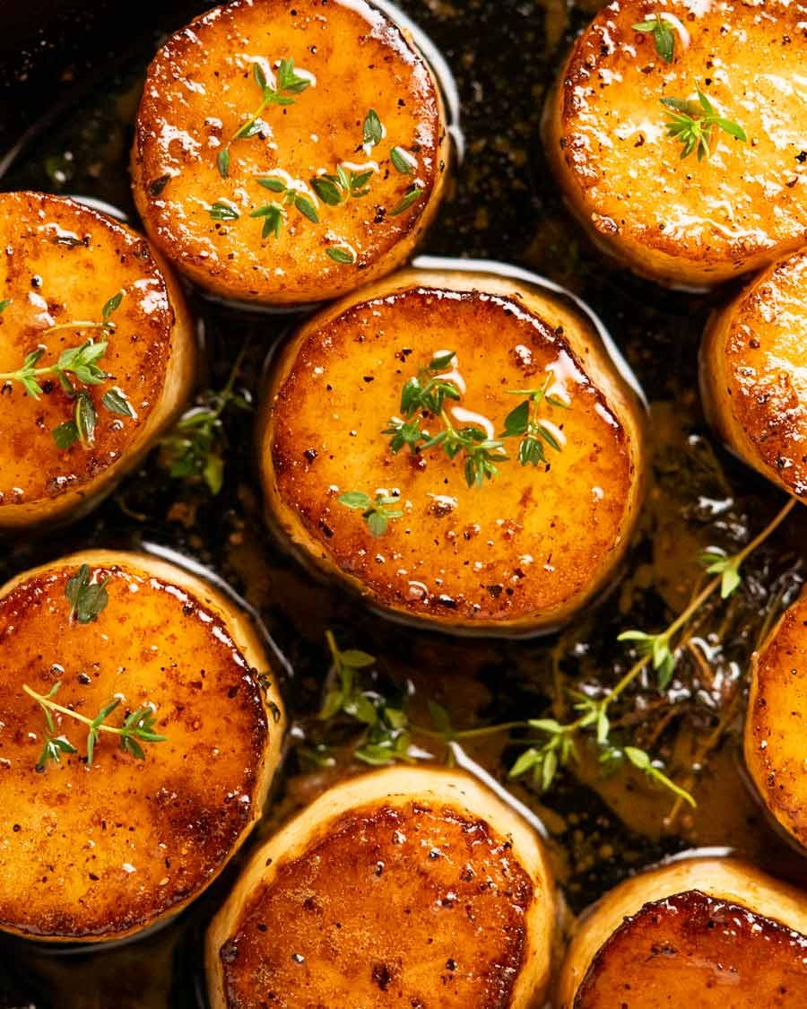 The result? Crispy edges, golden surfaces, creamy and flavoured all the way through inside, with intense herb infused-buttery sauce that’s thickened from the natural starches in the potato. This might be my favourite potato recipe of all time!