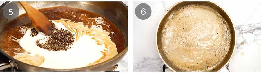 - Cream – Stir in cream and crushed pepper. Lower the heat to medium high. Simmer for 3-4 minutes, to reduce the sauce until it thickens enough to lightly coat the back of a spoon. Stir and scrape the sides of the pan as it reduces. Keep in mind that some stoves run stronger than others. If the heat is gentler, the sauce may take a little longer to reduce, so just allow a bit of extra time.