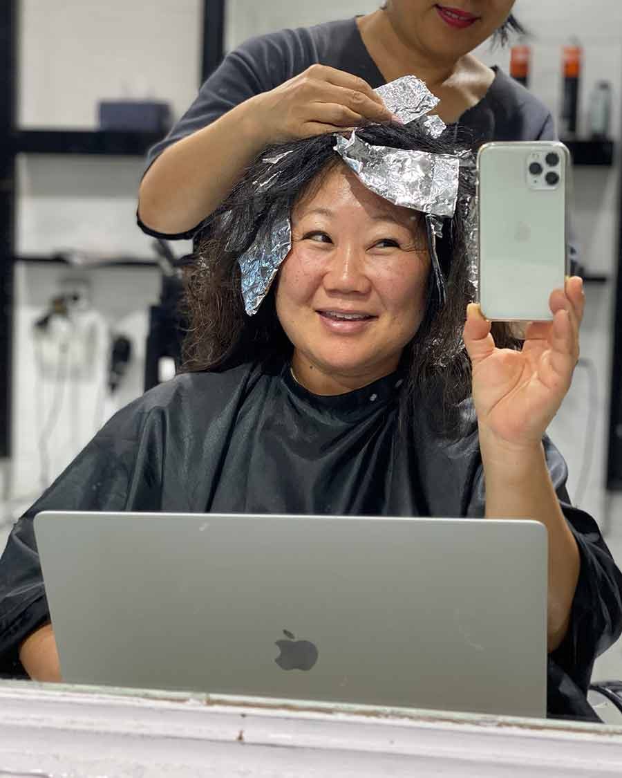 Weekend visit to the hairdresser, a necessary evil in this gal’s life. Every time the hairdresser fiddled with the foils in my hair, Dozer would perk up, expecting something tasty. Because when he hears the rustle of foil at home, it’s usually meat related – slow roasting a lamb, resting a steak loosely covered etc. 😂