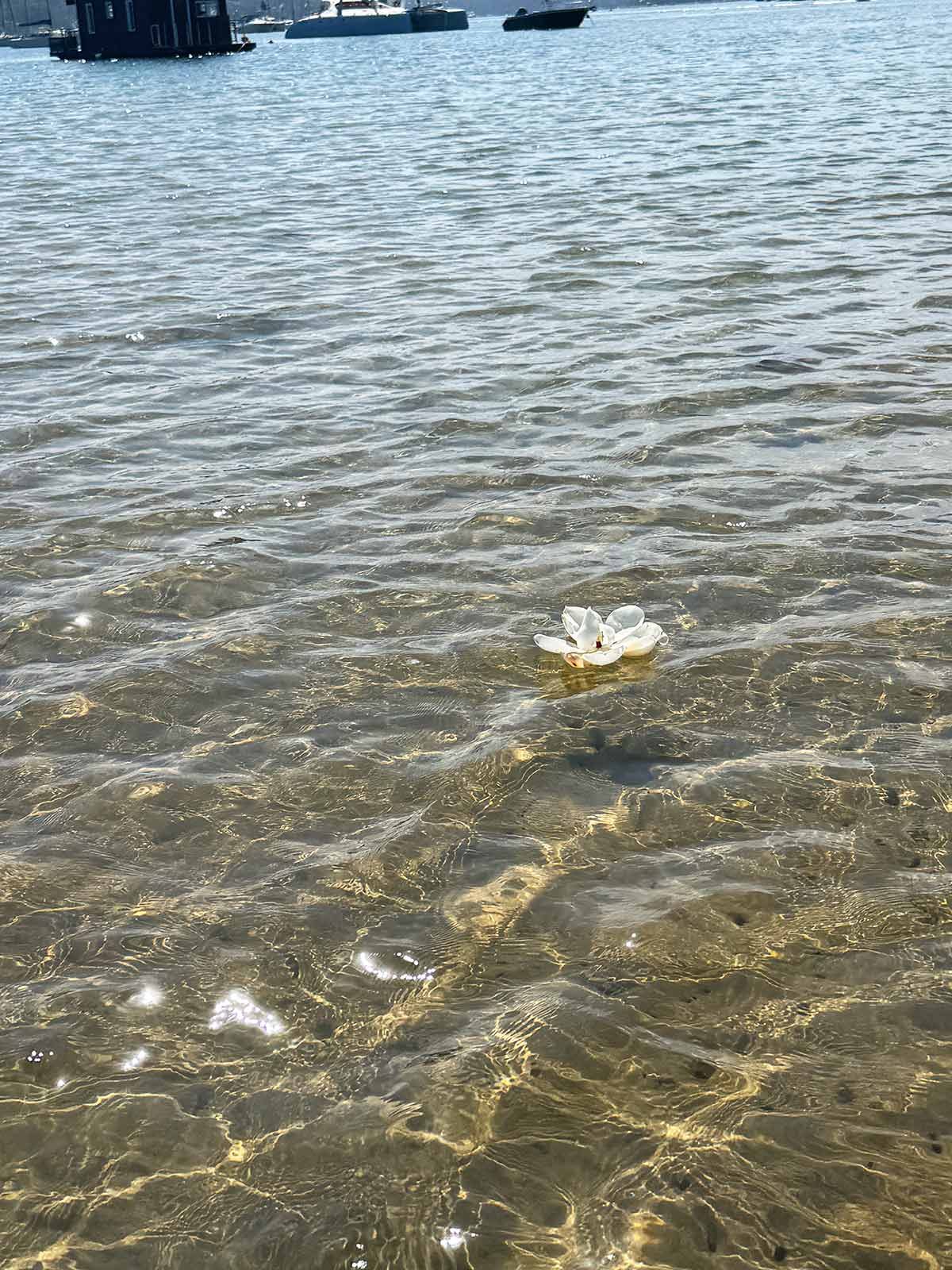 Yesterday marked one month since Dozer left us and it felt like the right time to say goodbye to him at Bayview dog beach. I placed a magnolia flower from our garden on the water and watched it drift away, then scattered his ashes into the sea.