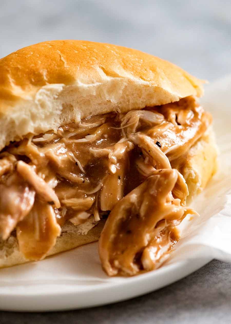 - Whisk gravy – Remove chicken onto a plate, then give the gravy a good whisk to make it smooth. Adjust Gravy thickness if required – Note 4. Taste and add salt and pepper, if needed.