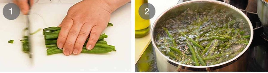 - Cook beans โ Bring a large pot of water to the boil. Add beans, let it come back to the boil, cook for 2 minutes, then drain in a colander. Rinse under cold running water for 10 seconds to stop cooking (there is NO NEED to use ice!).