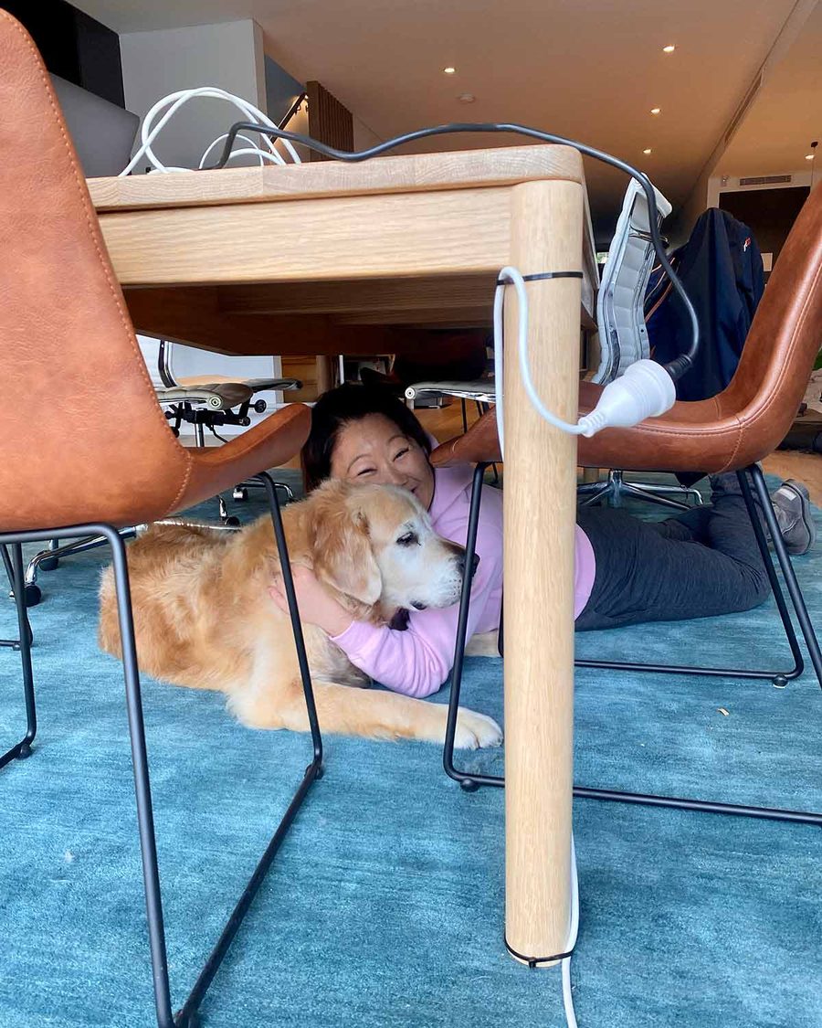 Dozer’s favourite spot is under the dining table (no prizes for guessing why). So sometimes, if I want a cuddle, that’s where I’ve gotta go!