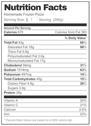 Per Pizza $2.33, round DOWN to $2 ? Australia is a notoriously expensive country to live in so you may be able to do this even more cost efficiently than me! 6. Nutrition per pizza i.e. one whole pizza