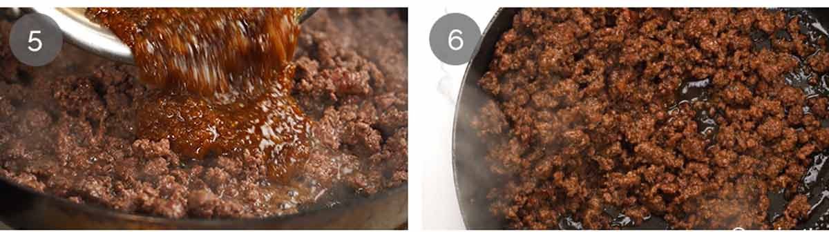 Add sauce – Once you no longer see raw beef, pour the sauce in.