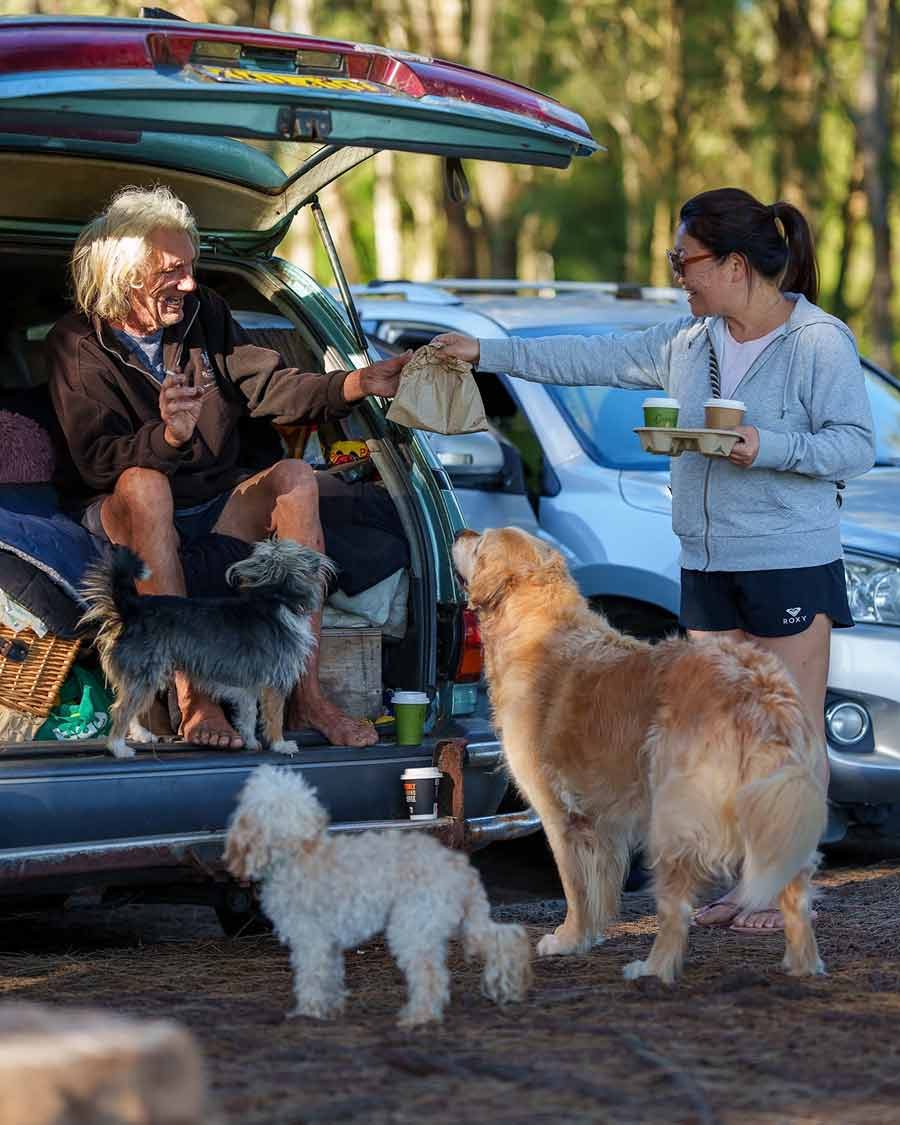 People have been wondering how Jeff is, our friendly local who lives at my local dog park (Bayview, in Sydney’s northern beaches), an official RecipeTin taste tester. He is doing well! This is how I start every weekend – coffee for Jeff, a ham and cheese croissant for his dog Cubby (sometimes Jeff gets a bite) and Dozer, waiting for scraps – until he gives up and gallops down to the beach to join his mates in the water!