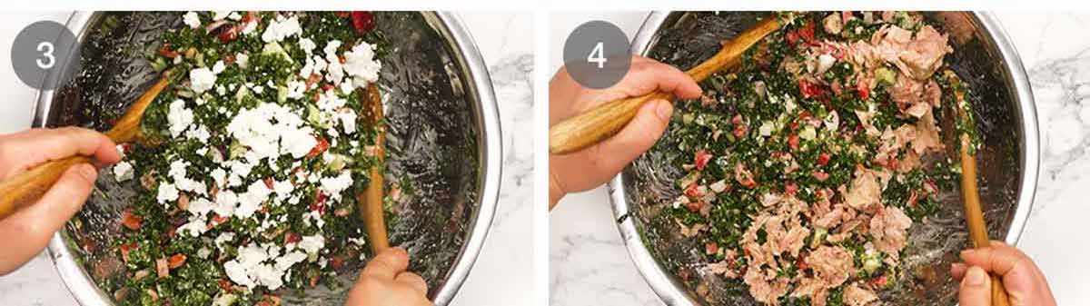 Mediterranean tuna salad with creamy feta dressing
