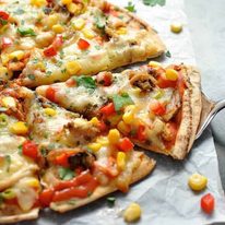 A tip for freezing Mexican Pizzas is to assemble each pizza on a piece of foil or baking paper. Then that way they are easy to pick up and stack on top of each other. Wrap them in cling wrap and pop them in the freezer. To bake, just thaw them for about 30 minutes to an hour so the base is properly defrosted. It doesn’t matter if the topping is still partially frozen because you actually want the base to cook more than the topping to get it as crispy as possible without burning the cheese.