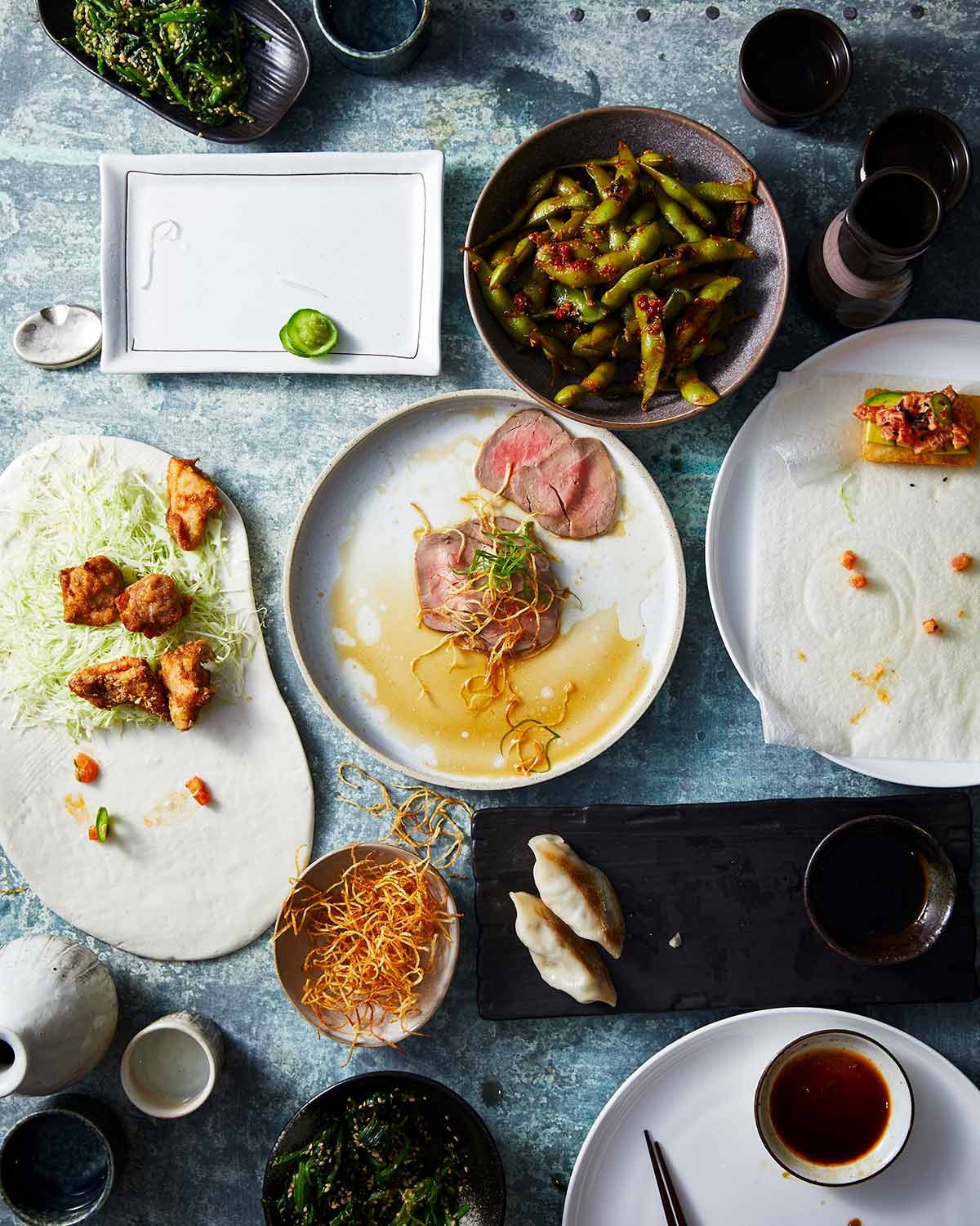 I have just spent most of the afternoon making some of these dishes, scaled down for my husband and me. I think the stand out dishes were the beef and the gyosa. Enjoyed the edamame beans and the rice cakes too but not as much. Great recipes. Thanks Nagi.