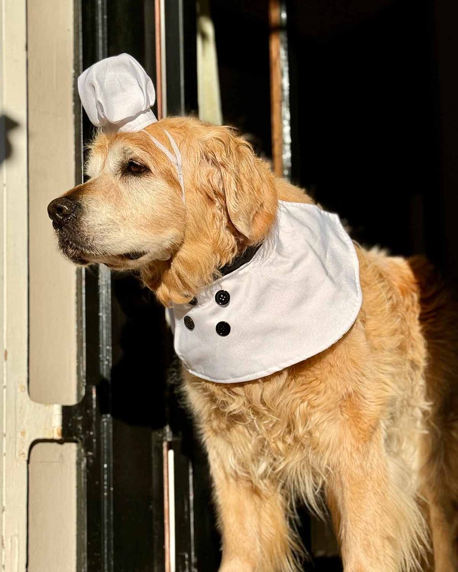 Dozer looks dashing in his chef whites!