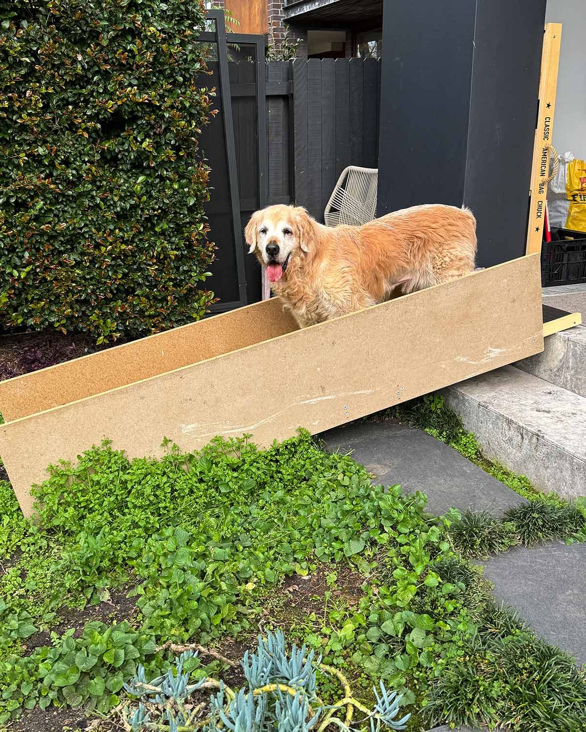 My builders made a ramp for Dozer, with safety sides and all. 🥰