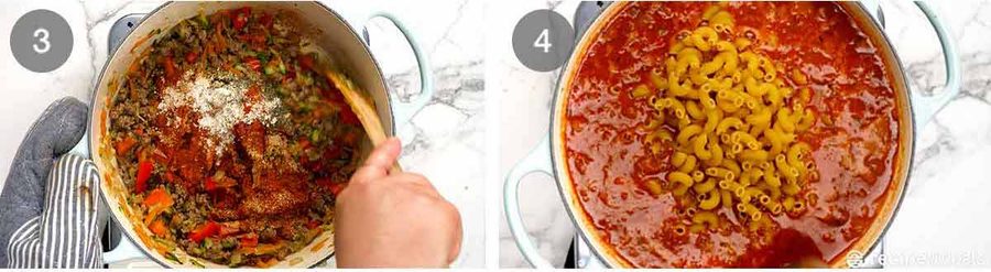 The key to success with this One Pot Cajun Beef Pasta for perfectly cooked pasta and enough sauce so it’s bubbly and saucy rather than dry and stodgy is to use enough liquid (stock, canned tomato and water). You will be surprised how much the pasta absorbs!