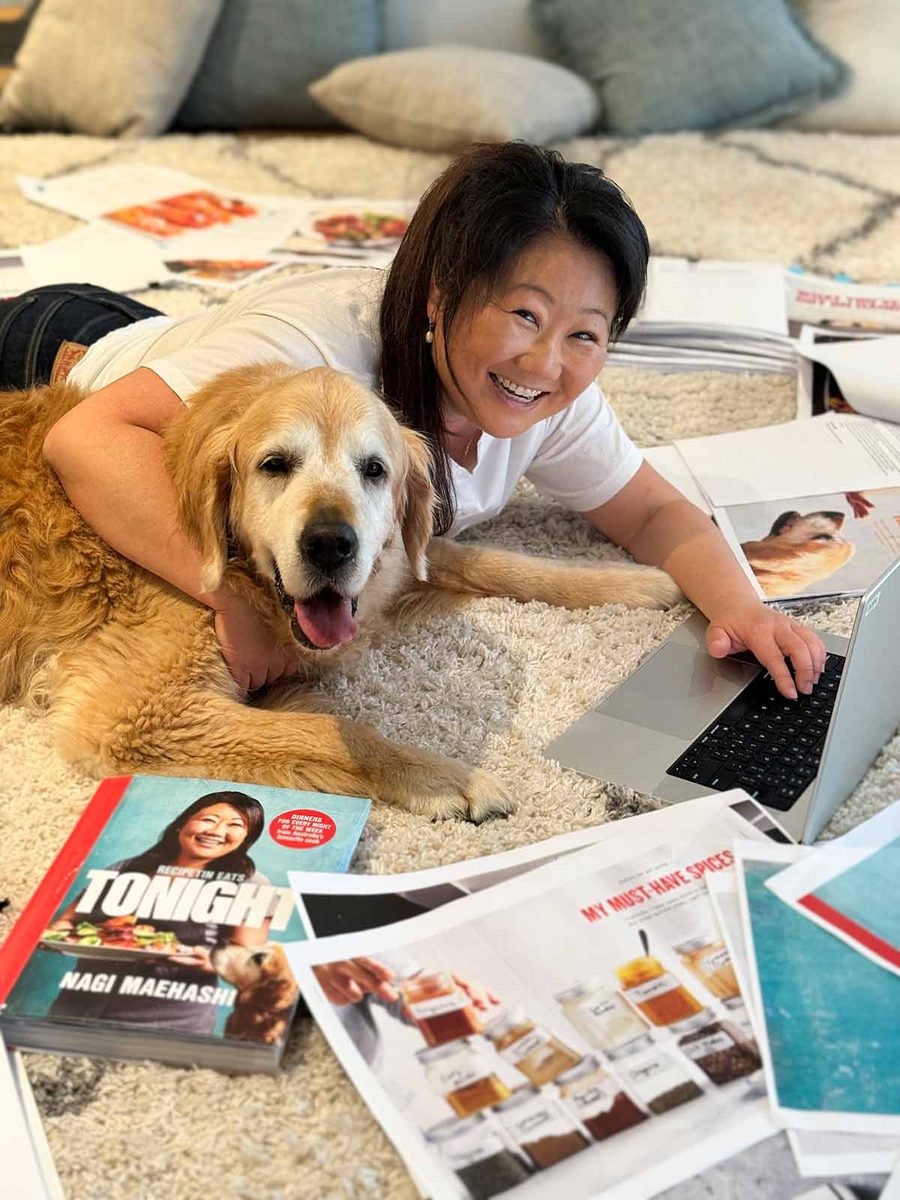 Dozer features prominently in this one. I insisted. No Dozer, no cookbook! He’s in every single Chapter opener. Here’s one of my favourites – no setting up required, 100% Dozer/Nagi situation!