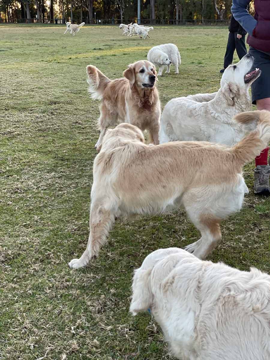 Just another Friday morning in the Life of Dozer – at the park with his mates!