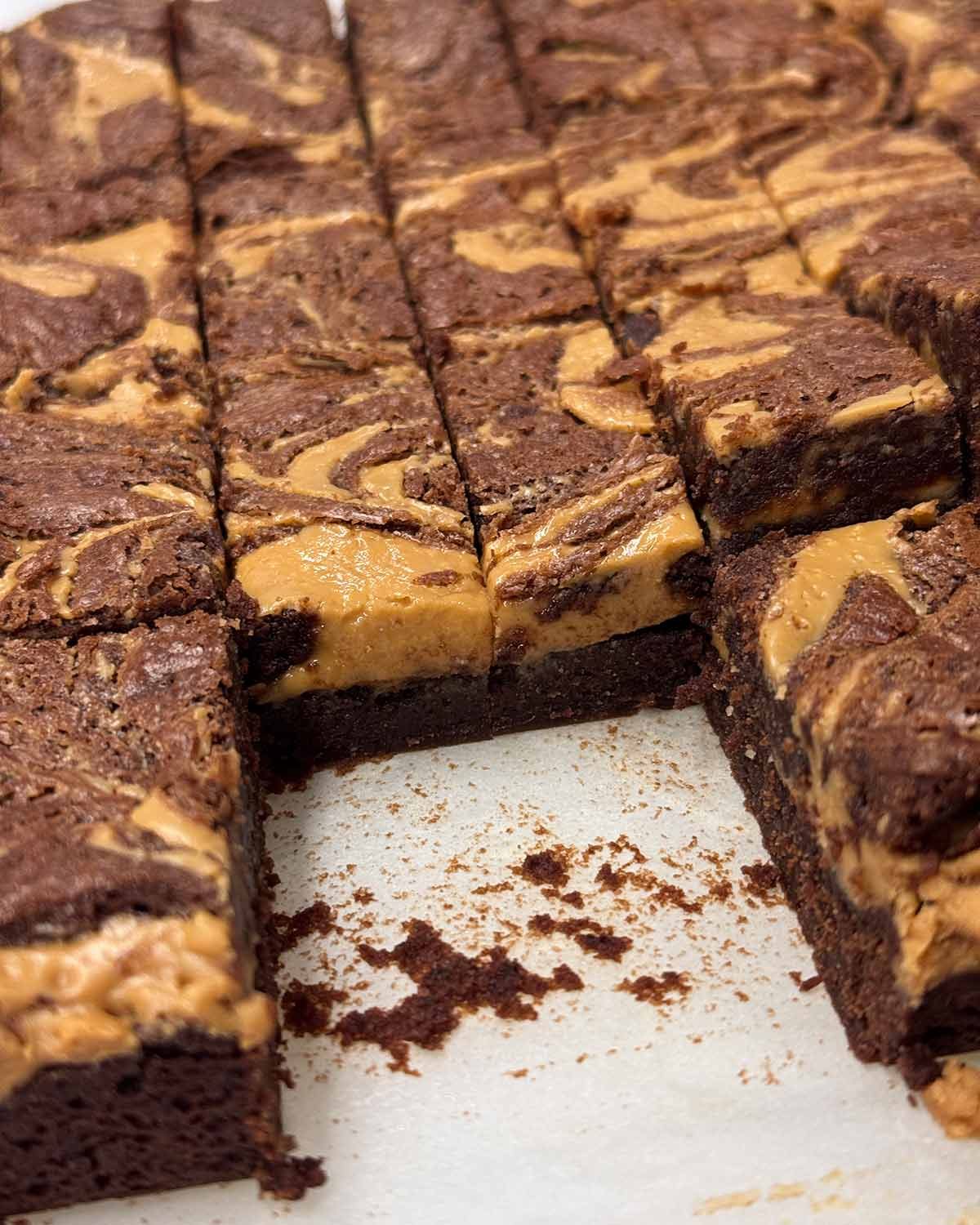 Just made these for morning tea using Biscoff instead of PB. I pulled the frozen spread out whilst I got the brownie mixture ready & it softened too much so that is a good lesson learned! Made it work & my son and his tradie mates said they were awesome!!! Will have to put the recipe on permanent rotation. Thanks Nagi