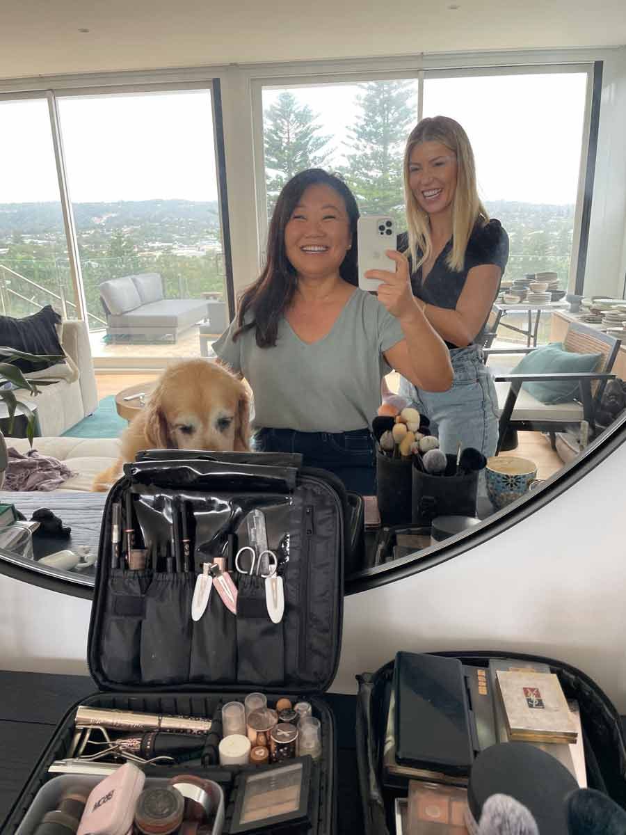 Here we are in our shot – mum and I. Just what you picture for a mother-daughter photo, right? 😂 Well, at least she’s wearing on-brand colours. No hot pink in sight – he he!