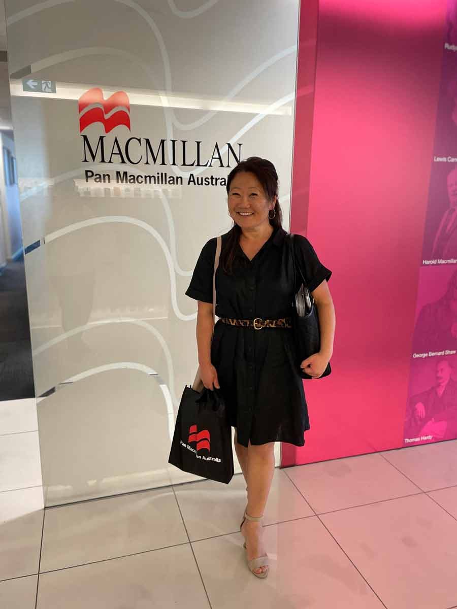 I find food helps me through it. Here I am on a proof reading day at Pan Macmillan with cheesecake to push me through the day.