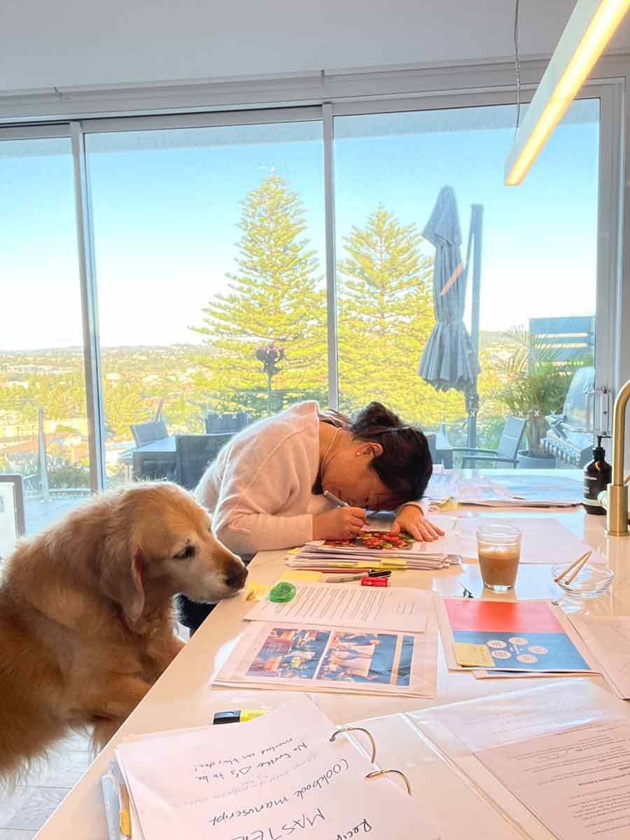 I actually enjoyed the strategic thinking behind this part of the project. Here I am with my publisher, Ingrid from Pan Macmillan, with a photo of all the recipes up on a wall as we went through what I described as “ripping up then stitching the cookbook back together again”!