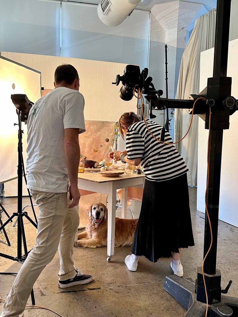 Coming to you in real time! This is Dozer today, at a photography studio for a Christmas special edition of Good Food Australia with the A-team: Rob Palmer (photographer), Emma Knowles (food stylist), Theresa Klein (photo chef). Who ever imaged a discount dog would experience such things!!