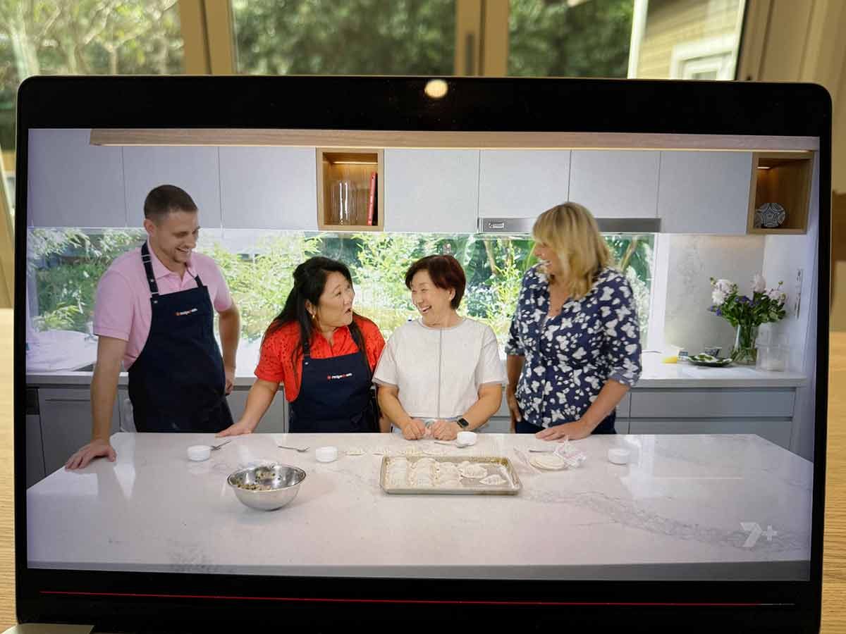 As his personal assistant, I was caught on camera once or twice too, along with Mama RecipeTin and our very own JB. Hard to say who stole the show – Mama RecipeTin by declaring herself the winner in the gyoza wrapping competition and that “everybody else comes last” (I mean, who says that to a famous person like Johanna Griggs??! 🤦🏻♀️)……..