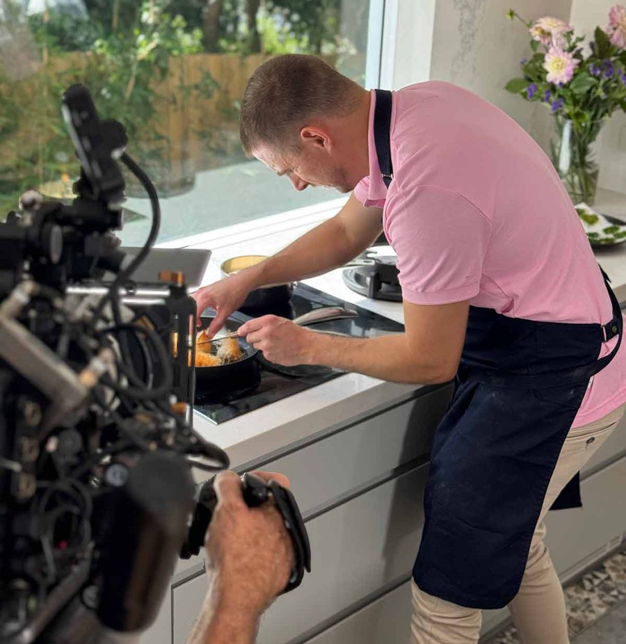 ……or JB for his show-off appetiser he made especially for the host Johanna Griggs – a crispy kataifi wrapped scampi (langoustine) with a yuzu beurre blanc, green shiso/ginger oil and a crispy shiso leaf. French X Japanese fusion for the homemade Japanese feast we did for the show!