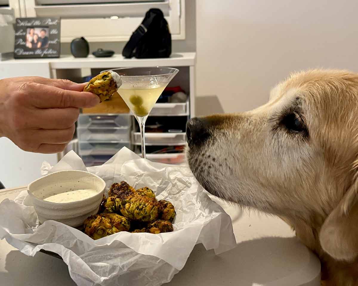 7. No eating in peace – Leftover Zucchini Tots that I posted earlier this week. Sadly too much garlic for Mr Dozer, but it didn’t stop the wishful thinking!